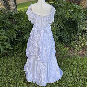 VTG 80’s Jessica McClintock Bridal White Satin Lace Dress-SZ 7 Victorian