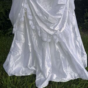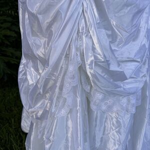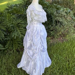 While originally designed as a bridal gown, this dress could also be used for period costumes such as Victorian, Edwardian, Southern Belle, Renaissance, or even saloon girl themed attire.