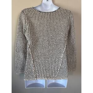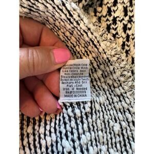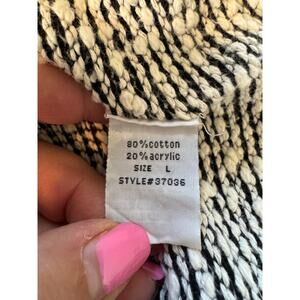 Chunky black and creme cotton/acrylic blend knit, long sleeves, V-neck, side panels for detailing, machine wash
