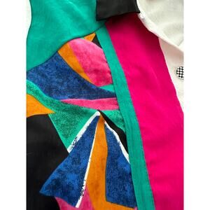 VTG 80s LA Attitude SzM White Green & Pink Color Blocked retro shoulder pads