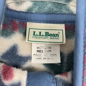 This vintage 80s L.L. Bean 1/4 Snap Fleece sweater in Women's size Medium is a unique piece with a Fair Isle pattern, featuring blue and green colors. Made in the USA, this pullover sweater is perfect for travel and casual occasions, with a mock neck and long sleeves for warmth. The soft fleece knit style and lightweight fabric make it comfortable for winter, fall, and spring seasons. Additionally, the sweater has accents of snaps, a regular fit, and comes in a multicolor design, embodying a retro 80s style with a touch of nordic and winter themes.