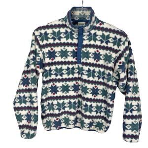 VTG 80s L.L. Bean 1/4 Snap Fleece Women’s Medium Blue Green Fair Isle USA Made