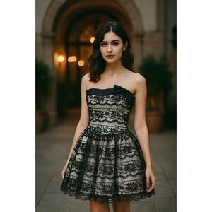 Jessica McClintock, Gunne Sax, Vintage Dress, Lace Dress, Strapless Dress, Party Dress, Black Lace, Size 5, Retro Dress, Cocktail Dress, Special Occasion Dress, Nylon Dress, Made in USA, Vintage Fashion, 80s, Madonna, Hoco, Prom, Formal, Cocktail Dress, Halloween, Party, Dark Fairy, Coquette