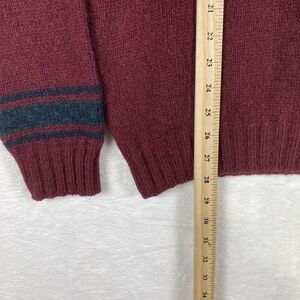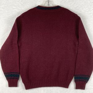 VTG 80s Lands End Wool V-Neck Sweater Mens M Red Burgundy Fair Isle Nordic USA