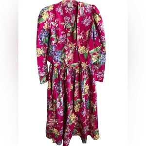 VTG 80’s Laura Ashley Maxi Pink Floral Cottagecore Prairie Dress W/Jacket Sz 14