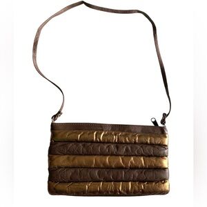 VTG 80s Leather Puffy Padded Quilted Clutch Bag Purse ~ Metallic Gold & Brown