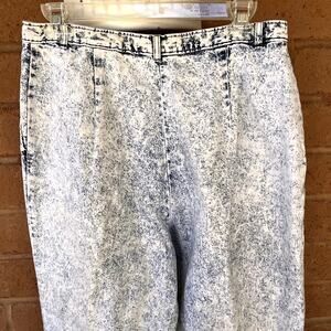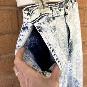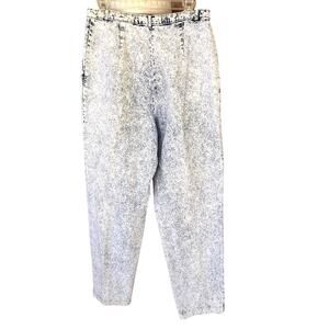 Vintage 1980's Levi's Sportswear white wash/acid wash/stone wash lightweight denim jeans. Ultra high rise pleated front with front hand pockets, plain rear with darts for tailored fit at waist. Baggy fit thru hips. Tapered at ankle. 100% cotton. Made in USA. Very good vintage condition. Women's size 16.