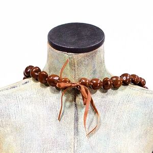 Long brown Hawaiian Kukui Nut Lei Necklace