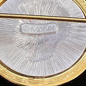This early 80s pin was made by Monet in the style of an ancient Greek coin