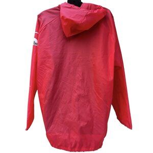 Classic, vintage, 80s, Marlboro, promotional merchandise, lightweight, windbreaker jacket . “Buy 3 packs of Marlboros and included this jacket”, limited edition. Jacket is packable and fits into kangaroo front pocket- turns into a pouch. Velcro closure on pack/ pocket. Unisex style. There is no size tag. I believe it to be a men’s medium or women’s extra large. Measurements are supplied below. Please compare with something you own. The elastic on the wrist cuffs lost its elasticity. Drawstring waist and collar. Hooded. There are a few subtle inks marks and small tear- see pics.