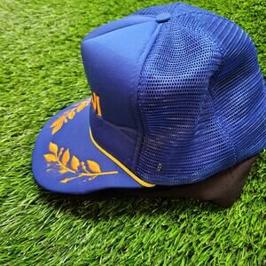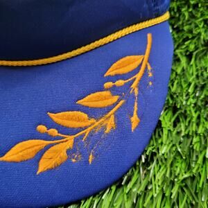 VINTAGE 80S MAUI TRUCKER HAT, HAWAIIAN HEADWEAR ROPE SNAPBACK CAP, NAVY GOLD EMBROIDERED MAUI HAT, LAUREL LEAF SCRAMBLED EGGS DESIGN HAT, HAWAII SOUVENIR MESH CAP, MAUI HAT, HAWAII CAP, TRUCKER HAT, SNAPBACK, VINTAGE CAP