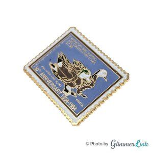 This rectangular pin features a design of two wigeon ducks in the water". It commemorates the 50th anniversary (1934 - 1984).