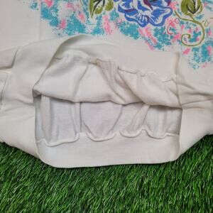 Vintage 80s Mom floral batwing sweatshirt in white with boxy cropped fit dolman sleeves tapered hem and soft pastel print
