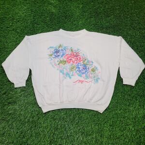 VTG 80s "Mom" Floral Batwing Sweatshirt Boxy Cropped Fit USA Made XL
