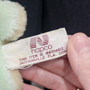 VTG 80s Napco Small Teddy Bear 2 Sided Green Beige 4.5" Miniature Pastel