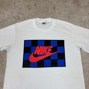 VTG 80s Nike John McEnroe Checker Logo Tennis T Shirt Challenge Court Men's L.
