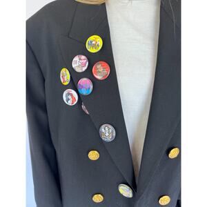 VTG 80s OS Crop Military Blazer Gold Buttons Trim, Streetwear 80s Rockstar Pins