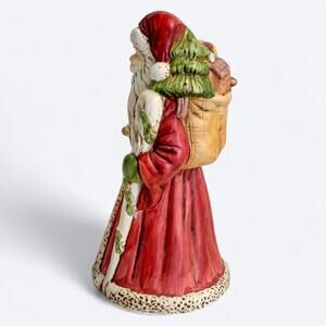 Vintage 80s Old World Santa Ceramic Figuring Music Box Plays "O Tannenbaum" from Silvestri in Red. Comes with original box.