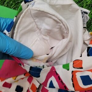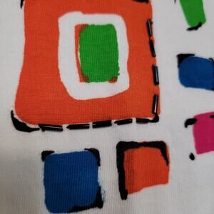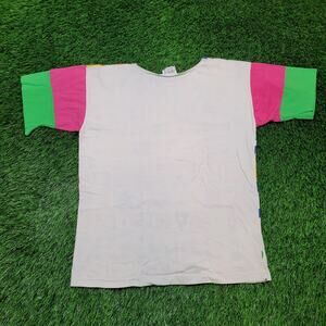 VTG 80s Oversized Boxy Top w/ Shoulder Pads Beaded Memphis AOP Womens L/XL Oversized Fit Boxy Fit Drop Shoulder Embellished Bugle Beads Abstract Print Geometric Print Color Block Sleeves Dolman Sleeve Style Neon Accents Bright Colors Art to Wear Style