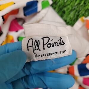 VTG 80s Oversized Boxy Top w/ Shoulder Pads Beaded Memphis AOP Womens L/XL
