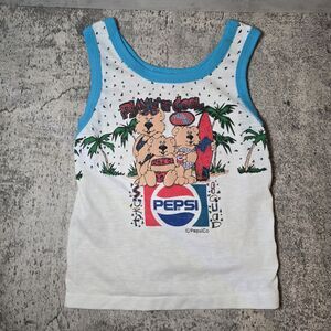 VTG 80s Pepsi Cola Bears Surf Style White 4T Tank Top T Shirt By Pilgrim