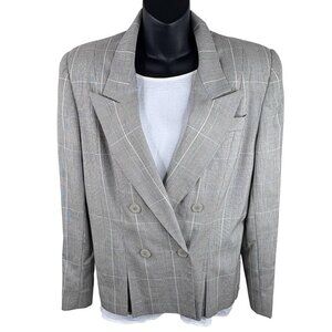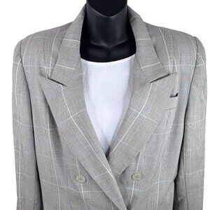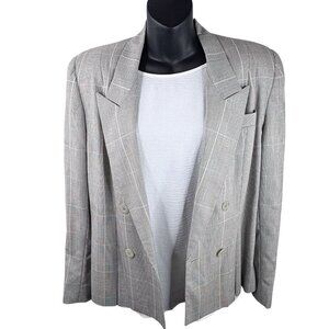 VTG 80s Pinstripe Plaid Double Breasted Classic Blazer Gilmor Gray Women’s 12