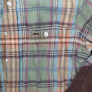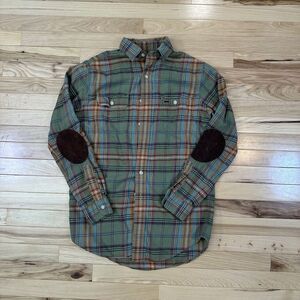 This Vintage Polo Ralph Lauren Outdoorsman Leather Elbow Long Sleeve Button Shirt in size S is a classic and stylish piece perfect for various occasions. Made from a combination of leather and cotton, it features a plaid pattern, collared neckline, and button closure. With leather enforced elbows, this shirt offers a unique and rugged touch, ideal for those who appreciate vintage style with a hint of Western flair. Perfect for casual, workwear, or business attire, this shirt is a timeless addition to any man's wardrobe.
