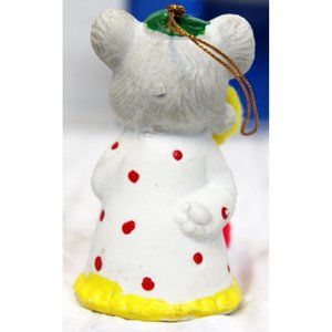 VTG 80s Porcelain Sleepy Christmas Mouse Ornament Bell Pom-Pom Slipper Tree Gift