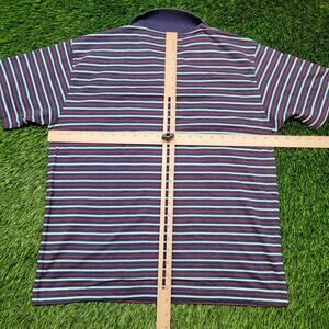 VTG 80s Puritan Knit Polo Shirt Mens Large Striped Preppy Coastal Collared Shirt Dad Style Yacht Rock Nautical Striped Multi-color Stripe Thin Stripe Textured Knit Cotton Blend Pocket Tee Chest Pocket Navy Blue Red White