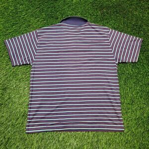Vintage 80s Puritan knit polo shirt large striped navy red white cotton blend preppy coastal dad style classic