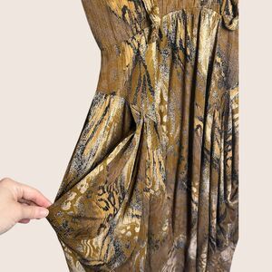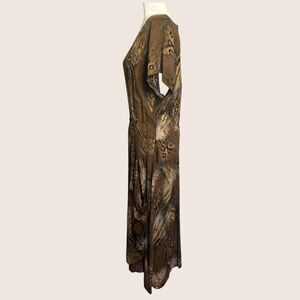 🐆 VTG 80s RABBIT RABBIT RABBIT DESIGNS ANIMAL CHEETAH PRINT DRAPE FRONT DRESS