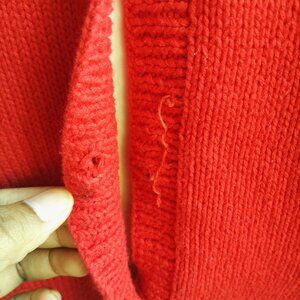 VTG 80s Red Boho Chunky Knit Floral Cottagecore Twee Button Up Cardigan Sweater