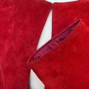VTG 80s Red Suede Leather Jacket Med Long Sleeve Hook Closure Retro Western Bold