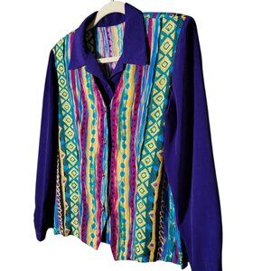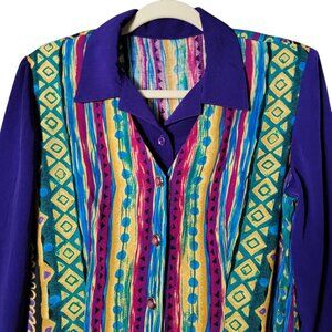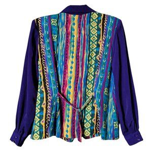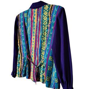 VTG 80s Retro Multicolor Geometric Tribal Funky Artsy Boho Back Tie Twofer Top M