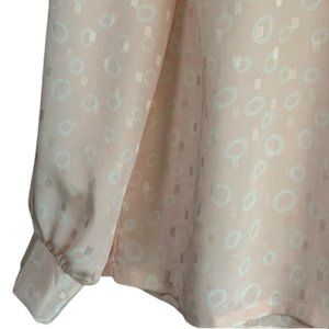 VTG 80's Rrrrruss Pink Satin/Silky Long-Sleeve Blouse | Int. Ladies Garment Workers Union (tag included), lightweight/breathable material, three buttons down back, soft pink color with light geometric pattern