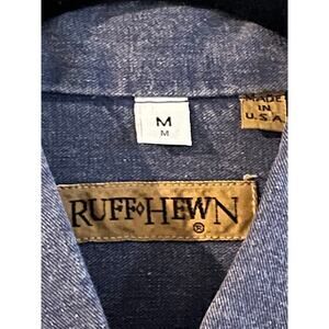 VTG 80s Ruff Hewn Shirt Mens Blue Denim Button Down Size M