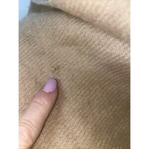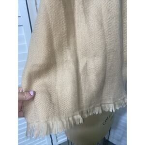 Very soft. Light tan khaki color. Tweed flannel feel. Fringes on the edges.