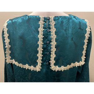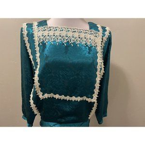 VTG 80's Scott McClintock GUNNE SAX Blue Floral Silky Prairie Bib Dress sz.M-L