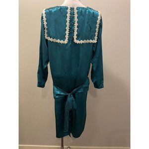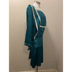 Gorgeous!!! Vintage 80's Scott McClintock GUNNE SAX Blue Floral Silky Prairie Bib Dress sz.M-L