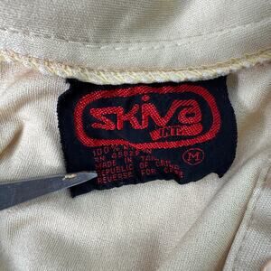 Vintage 80s Shiny Tan Blouse Lace Trim Button Up Shirt Women’s Medium Taiwan