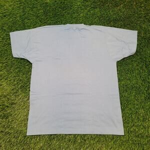 Vintage 80s USS Texas BB-35 T-shirt, men’s M, single stitch, light blue military ship graphic, Made in USA navy tee.