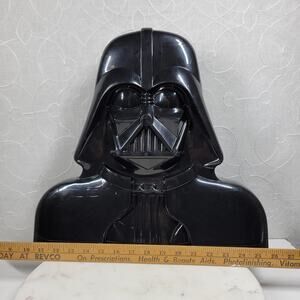 An iconic piece of Star Wars memorabilia: a vintage Darth Vader Accessory Storage Chamber from Return of the Jedi. This case is molded in the shape of Darth Vader's helmet and upper body, and opens to reveal compartments designed to hold various Star Wars action figure accessories