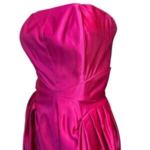 VTG 80s Strapless Ribbed Taffeta Silk Magenta Pink Barbie Fit Flare Dress SZ 12