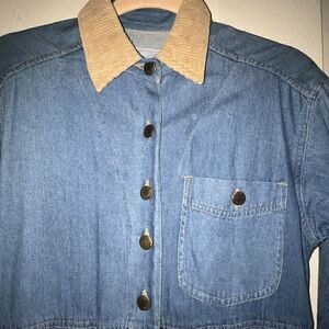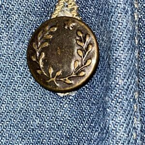 Features: hidden pockets, button front, buttons with details of branch and star, corduroy collar