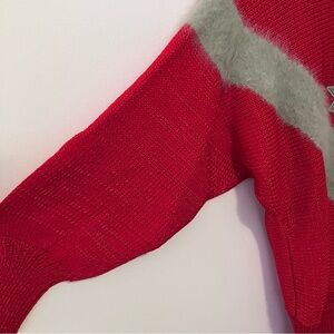 VTG 80s Style Red Women’s Sz. S Puff Sleeve Sweater Fur Appliqué Stars Sequins