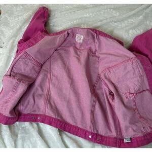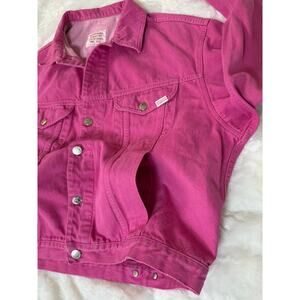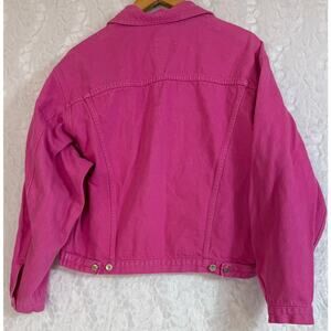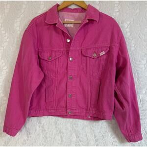 VTG 80s United Colors of Benneton Italy Bright Pink Denim Cropped Jacket M / L**
