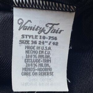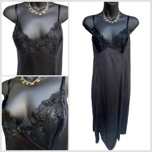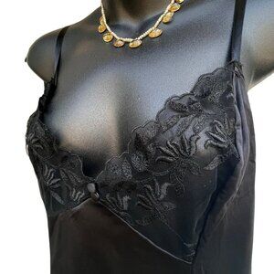 VTG 80s Vanity Fair Full Slip Dress Floral Sheer Bodice Silky Black Women’s 36