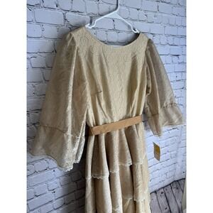 VTG 80's Western Cowgirl Rodeo Square Dance Tiered Eyelet Dress Sz Small NWT