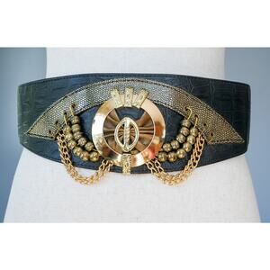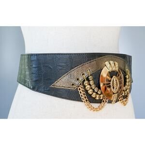 VTG 80s Wide Waist Cinch Belt Studded Medallion Goth Punk Statement Faux Leather