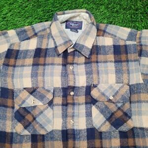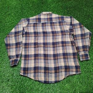 Vintage 80s Williams Bay flannel shirt mens large blue brown beige plaid acrylic western double flap pockets grunge lumberjack gorpcore cabin core